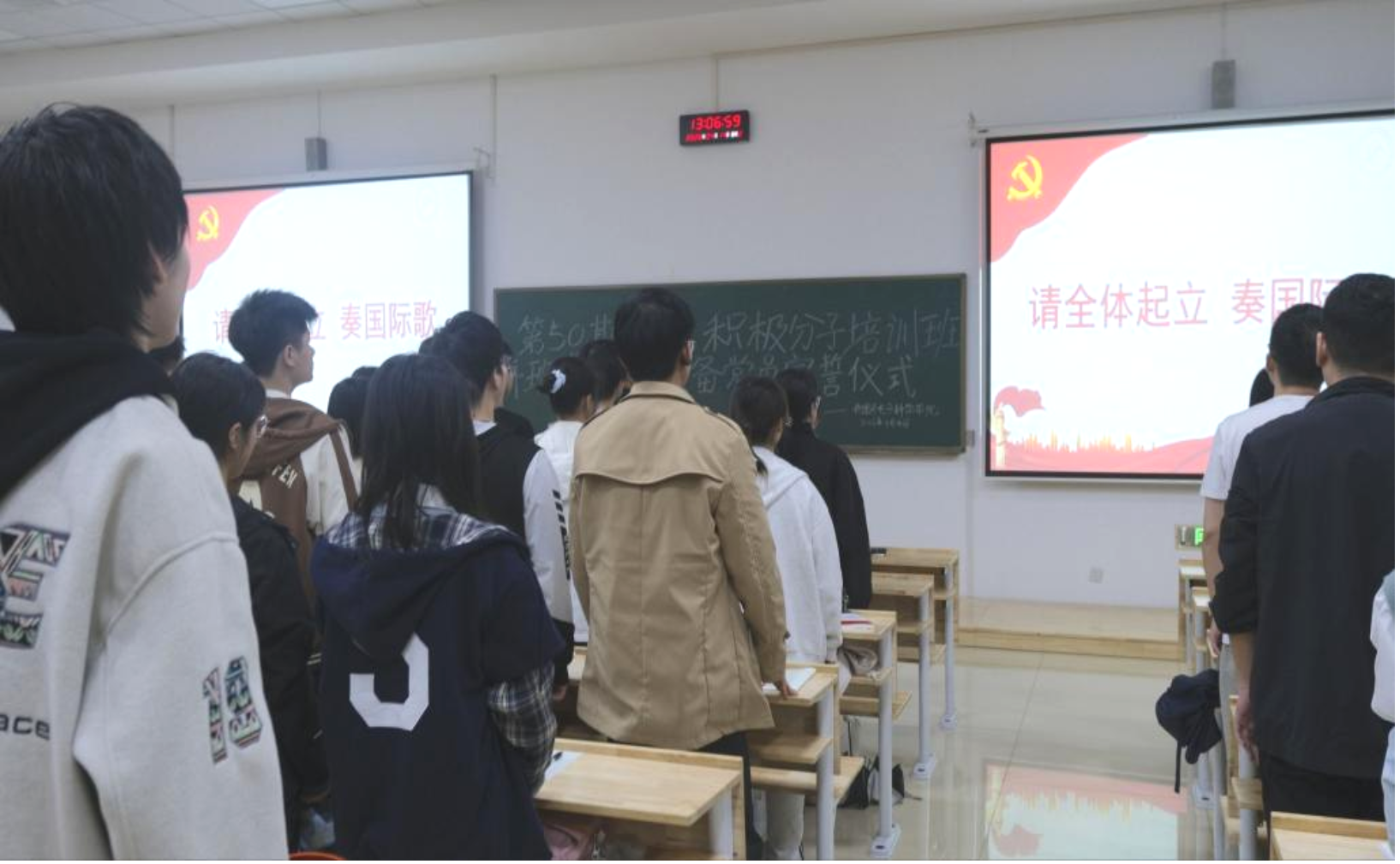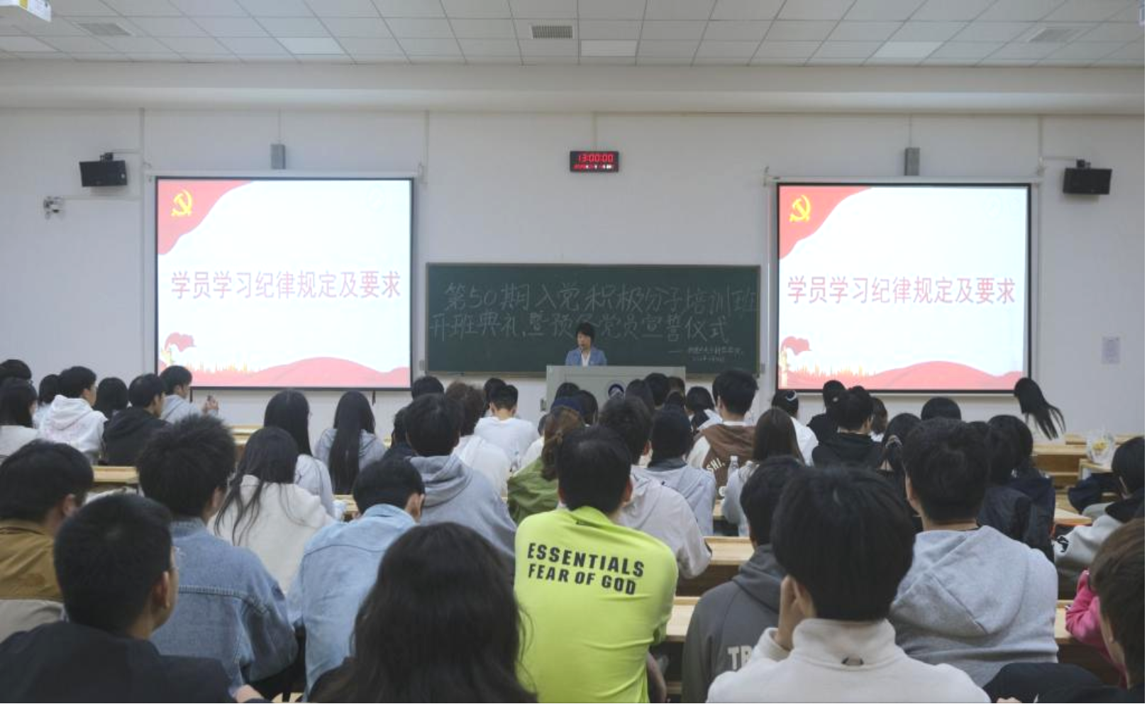 随后,第50期入党积极分子培训班开班典礼正式举行。贺玲宣读培训纪律要求,强调全体学员要珍惜学习机会,严守出勤纪律、潜心钻研学习、积极交流研讨,切实端正入党动机,争取早日加入党组织。入党积极分子代表张函发言,表示将以严谨态度投入培训,严格遵守纪律、做到知行合一、主动服务集体,圆满完成各项学习任务。