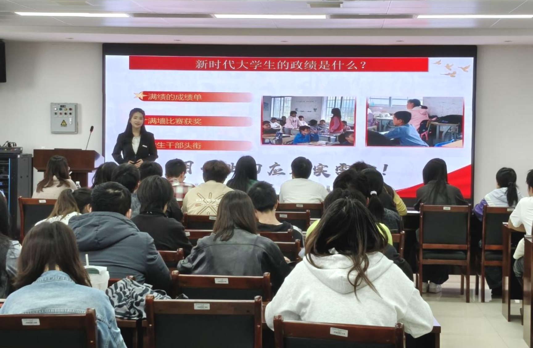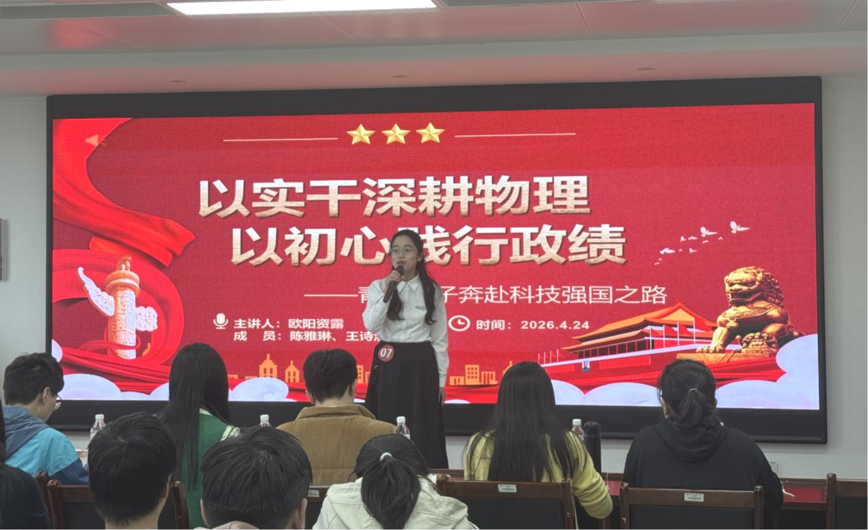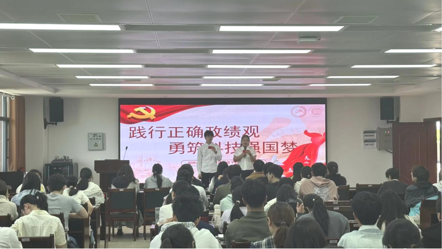 比赛现场,17组参赛选手精神饱满、表达流畅。他们借助自制PPT,结合黄文秀、万步炎等先进榜样的事迹,立足a片无码 专业特色,深入浅出地解读正确政绩观的时代内涵,生动宣讲党的创新理论,并结合学科发展诠释青年助力科技强国的责任与担当,展现出青年学子扎实的理论素养与昂扬的精神风貌。