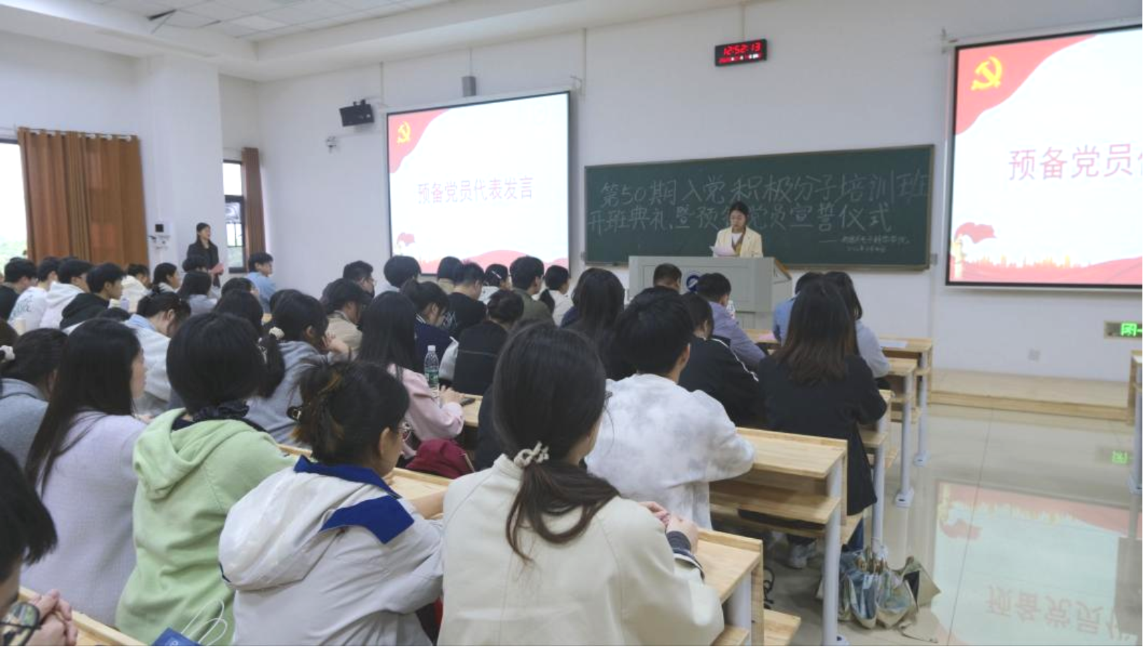 为严把党员发展入口关,强化入党积极分子思想淬炼,规范预备党员教育管理,4月14日中午,a片无码 2026年上半年入党积极分子培训班开班典礼暨预备党员宣誓仪式在敏行楼C512举行。a片无码党委副书记、分党校副校长贺玲,a片无码组织员、研究生第一党支部书记龙睿,团委书记、本科生第三党支部书记陈涵出席活动,第50期入党积极分子及预备党员近200人参加,活动由学生党建工作办公室发展部王瑀琪主持。